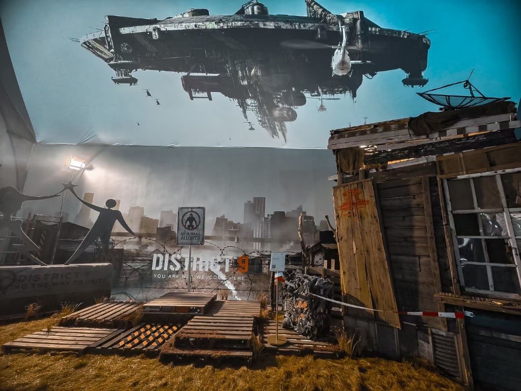 本次科幻电影季活动主题,从索尼影视的经典⽚库中精选出带有历史性、⾥程碑性的优质科幻影⽚:《黑衣人》系列、《超能敢死队》系列、《第九区》、《超能查派》等大众耳熟能详的经典大片,并从中提取元素进行展览呈现,将科幻电影艺术浓缩于五大主题展区:A-曼哈顿奇幻街道(超能敢死队、第九区、查派);B-黑衣人大厅;C-光影及游戏互动体验区;D-外星陈列室(道具展示);E-经典海报区。